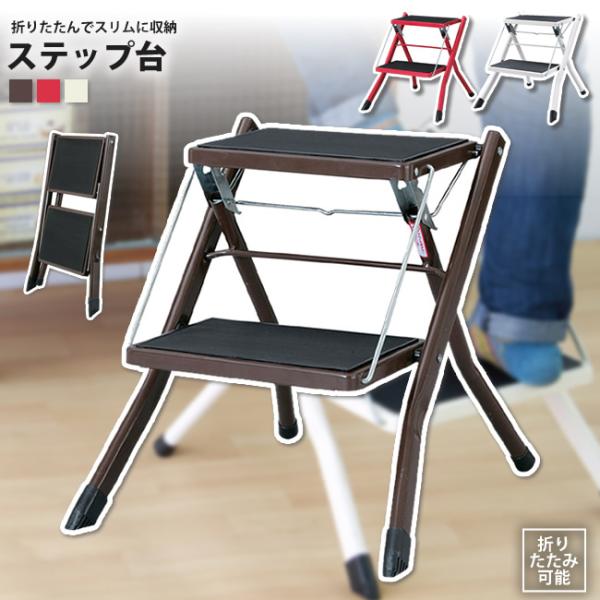 ステップ台 2段 おしゃれ 折りたたみ式 踏み台 脚立 PC-334 BR/WH/RD アシスタ