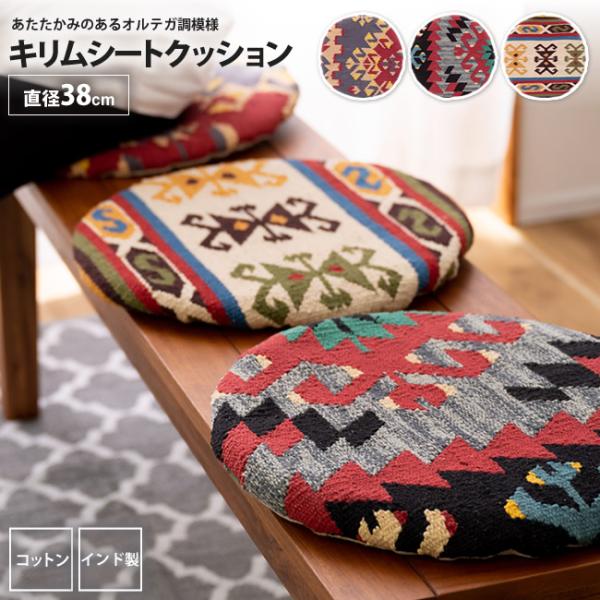 チェアパッド おしゃれ 直径38 シートクッション キリム オルテガ調 円形 FAB-003 A/B/C キリム シートクッション