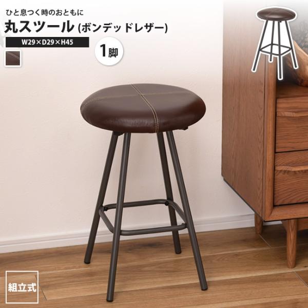 丸スツール 1脚 高さ45 おしゃれ ボンデッドレザー ラウンド 椅子 チェア いす イス PC-16BR スツール
