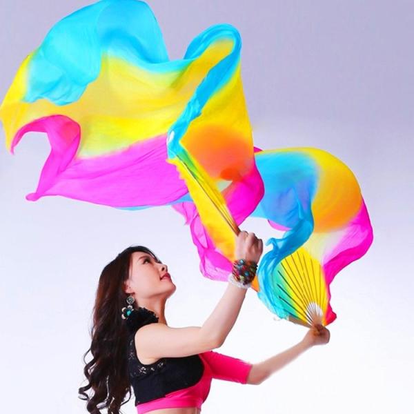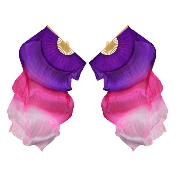 手作りシルクベリーダンスファンベールダンスロングハンドファンパープル+ロージー+ホワイト
