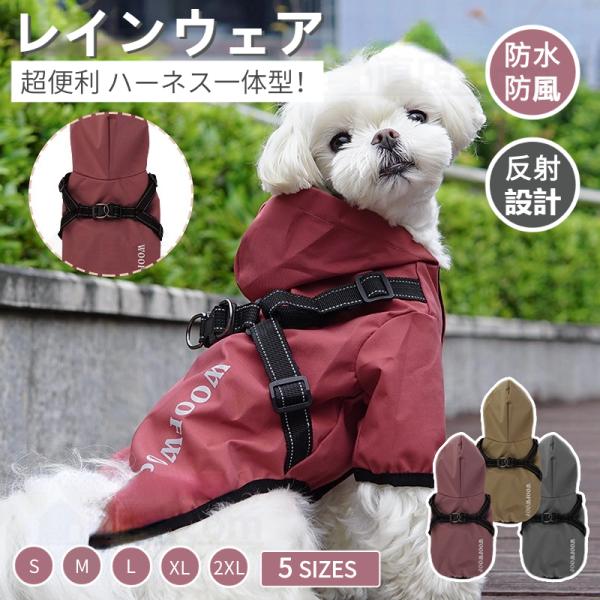 犬 レインウェア ハーネス一体型 小型犬 中型犬 ペットレインコート 雨具フード付きペットドッグウェア レイングッズ 雨カッパ レインウエア 犬の服