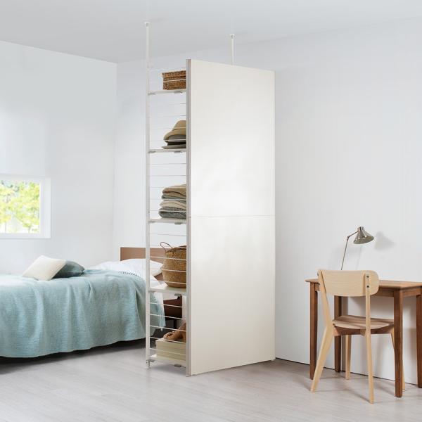 ホワイト間仕切り収納 ハンガー&棚タイプ・連結用 幅88cm リビング収納 パーテーション 間仕切り 589745 爆買