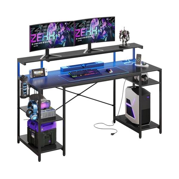 Bestier ゲーミングデスク 幅140cm コンセント付き Type-Cポート付きパソコンデスク 机 pcデスク LEDライト・モニター台付