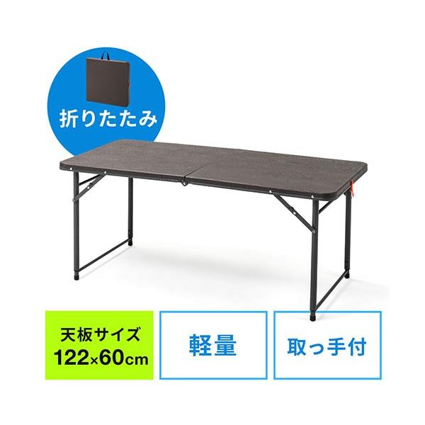 折りたたみテーブル 高さ変更 持ち手付 持ち運び 天板122cm・60cm 省スペース収納 軽量 簡単組立 ブラウン EZ1-FD014M