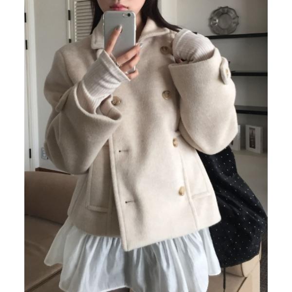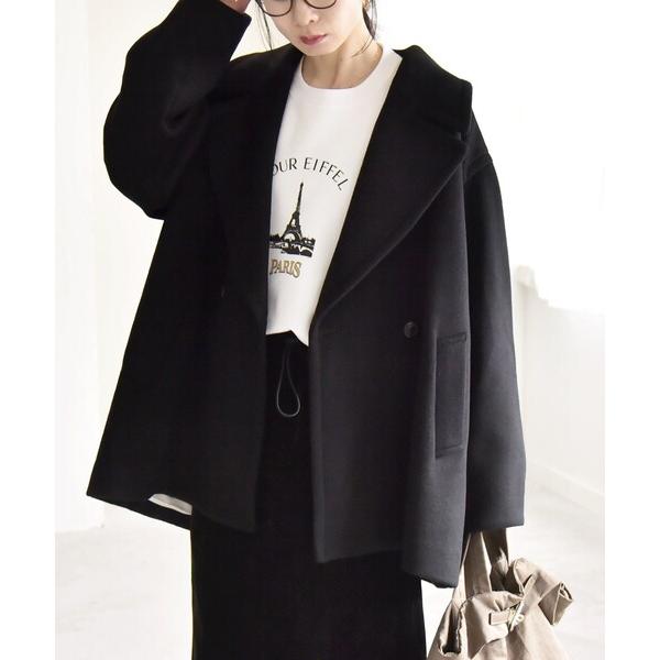 ピーコート pコート quaranciel: PURE WOOL ダブルブレスト テーラード ハーフ コート レディース