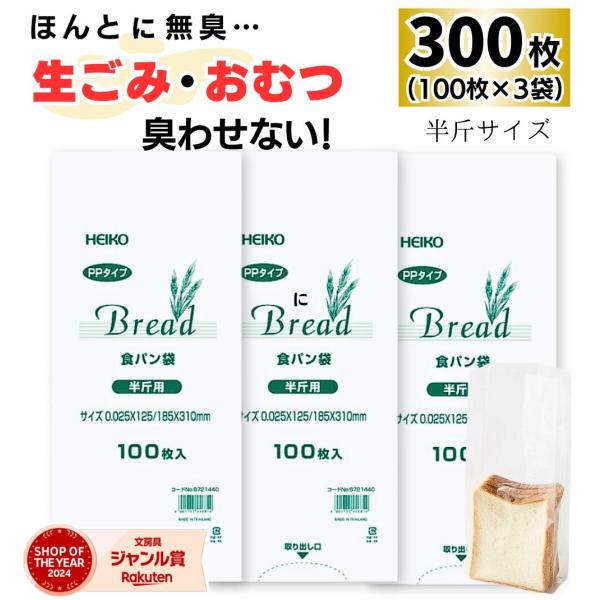 2024年新登場!限定店舗販売 オリジナル PP食パン袋 半斤用 300枚 100枚×3束 送料無料 パン袋 オムツ HEIKO におい袋 オムツ袋
