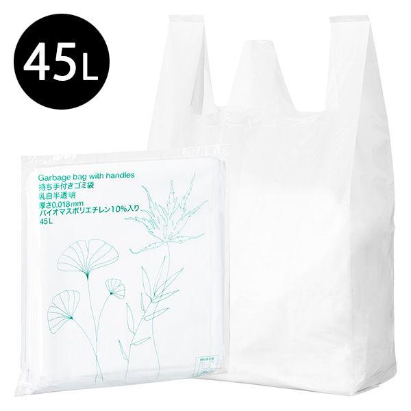 ゴミ袋 取っ手付き 白半透明 普通 45L 30枚入×1パック 厚さ0.018mm 高密度タイプ バイオマス10% アスクル (イチオシ) オリジナル