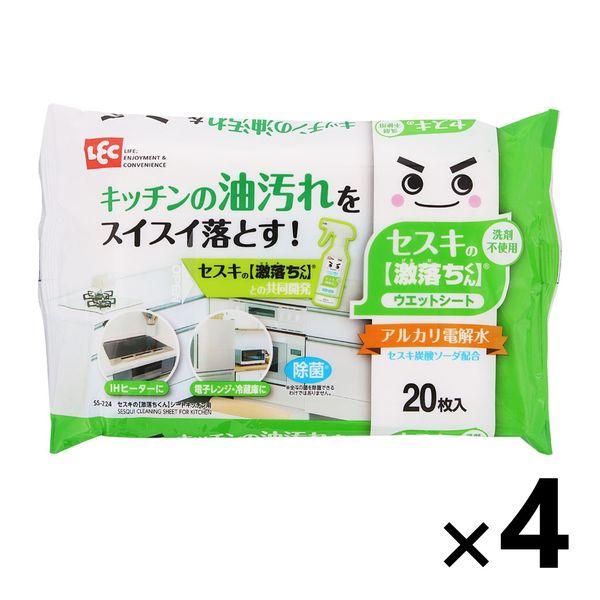 セスキの激落ちくんシート キッチン用 お掃除シート 油汚れ 洗剤不使用 セット(1パック(20枚入)×4)レック