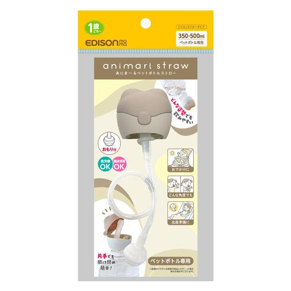 EDISONmama あにまーる ペットボトルストロー おもり付き 子供 ペットボトルストローキャップ 食器乾燥機対応 携帯用 携帯に便利 幼稚園 保育園 水筒 出産準備