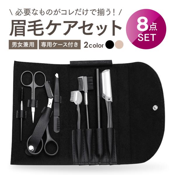 眉毛 はさみ 8点 セット カット ケア 毛抜き アイブロウペンシル コンパクト コーム ケース ブラシ カミソリ メンズ レディース