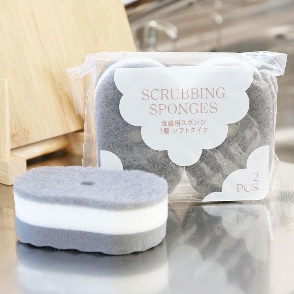 (限定)キッチンスポンジ 泡立ちコンパクト キズをつけにくい ソフトタイプ 1パック(2個入) オリジナル