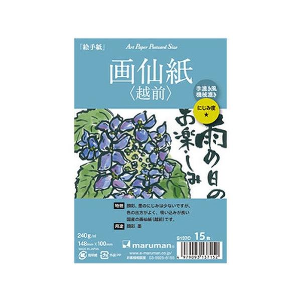 絵手紙用ポストカード 画仙紙・越前 手漉き風機械漉き 15枚入 S137c|maruman 6冊までネコポス便可能