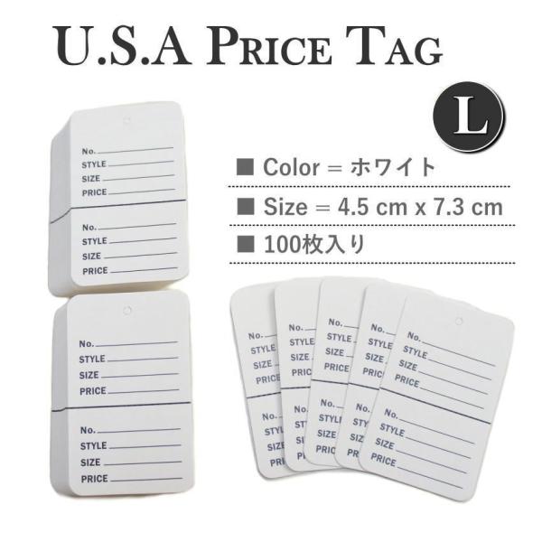 USA アメリカンスタイル プライスカード Lサイズ ホワイト 100枚 タグ 値札 下げ札 英字 ミシン目 切り取り式