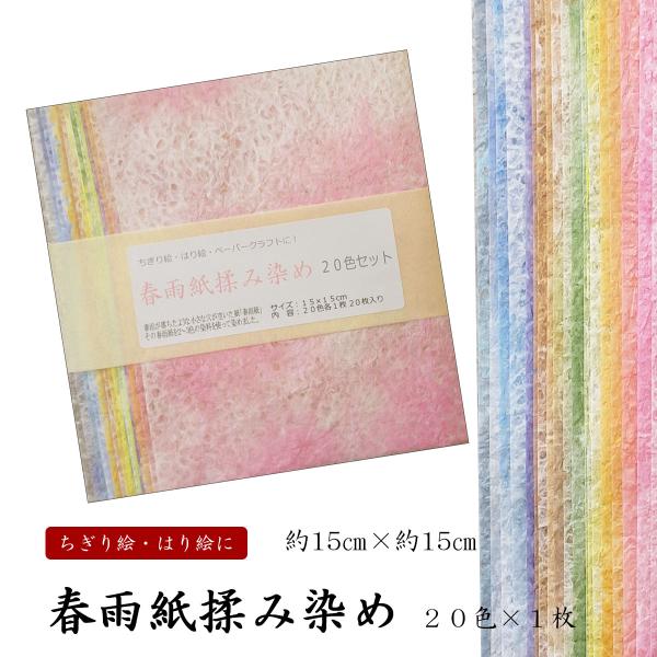 春雨紙揉み染和紙セット 20色×1枚入 15センチ×15センチ 和紙セット ちぎり絵 はり絵 ペーパークラフト