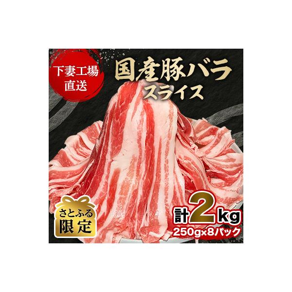 ふるさと納税 下妻市 【小分けで便利】国産 豚バラスライス 計2kg(250g×8パック)〔下妻工場直送〕【さとふる限定】