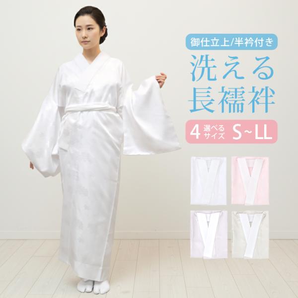 長襦袢 洗える 長襦袢 半襟付 レディース 女性 「白」S M L LL 掛け衿 地紋入り 小さいサイズ 大きいサイズ 襦袢 着物 和服 ※腰紐別 (メール便不可)<R>