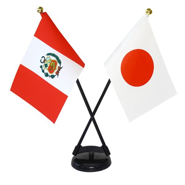 TOSPA ペルー 国旗 ミニフラッグ 2本立てセット 旗サイズ10.5×15.7cm テトロンスエード製 ポール27cm +スタンドセット 日本製 世界の国旗シリーズ