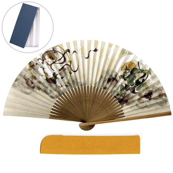 マツヨシ 163 紙扇子 紳士「風神雷神(差し袋[6060-6]セット)」箱入り 扇子 約22cm メーカー取寄品