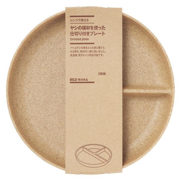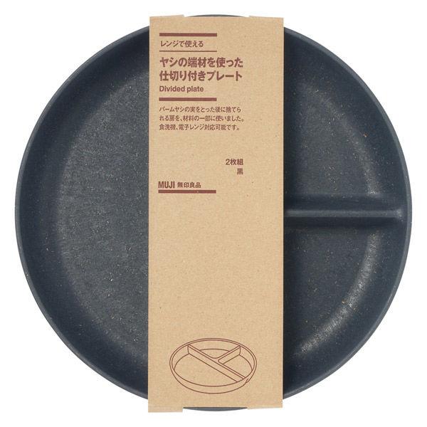 無印良品 レンジで使える ヤシの端材を使った 仕切り付きプレート 2枚組 黒 良品計画