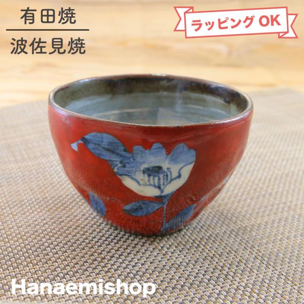 湯呑(湯飲み茶碗) 有田焼 波佐見焼 一服碗 山茶花一服碗(赤) 夫婦湯呑 花柄 土物|和食器 陶器 三階菱