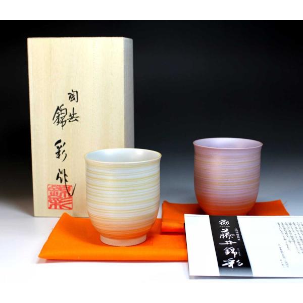 有田焼 陶芸家 藤井錦彩作 窯変艶消し釉金彩刷毛目湯呑みペアセットA