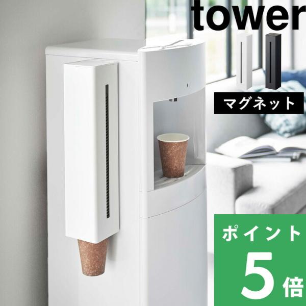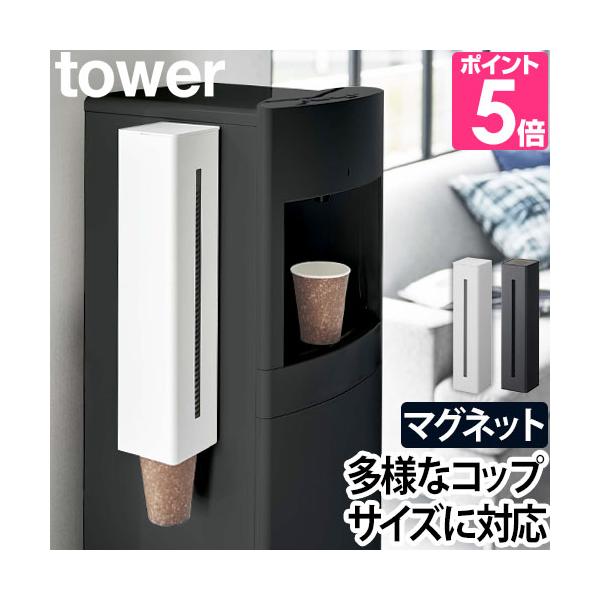 特典付 山崎実業 ウォーターサーバー横マグネットカップディスペンサー タワー tower 公式 紙コップホルダー 紙カップ 5595 5596 磁石 白 黒