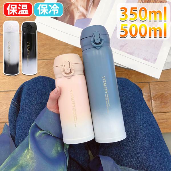 水筒 350ml 500ml シームレス 真空断熱ボトル 保温 保冷 直飲み ワンタッチ 子供 大人 軽い スリム コンパクト 軽量 清潔 保温 保冷 軽量 洗いやすい