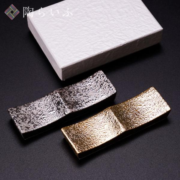 九谷焼 二連箸置き 兼 カトラリーレスト 金彩銀彩ペア 人気 ギフト 専用化粧箱入り