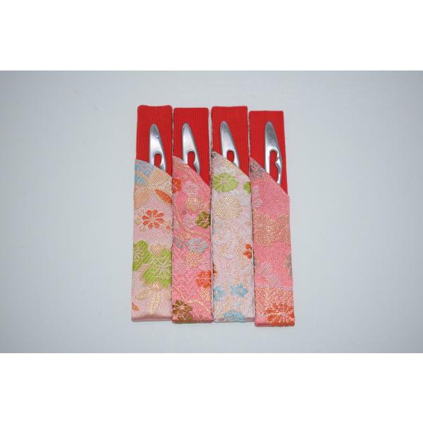 茶道具 楊枝差 長寸 赤色系交織 ステンレス楊枝付 菓子楊枝 菓子切り 1点 注)絵柄はお任せください tz31-026 注)画像は見本です。