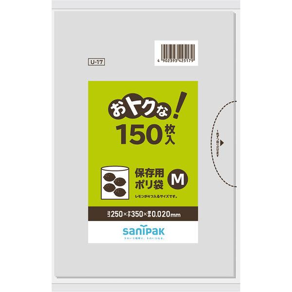 おトクな!保存用ポリ袋 M 透明 食品保存や整理に 250×350mm 厚さ0.02mm 1パック(150枚入)日本サニパック