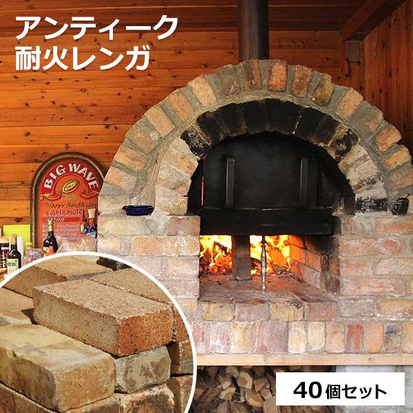 送料無料 耐火 レンガ 40個セット 約148kg 約1平米分 ガーデニング 園芸用品 リーベのアンティーク耐火レンガ