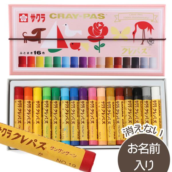 クレパス100周年記念限定パッケージ 金色の箔押しデザイン 卒園記念 入学記念 マイネーム入り サクラ 太巻(16色)(無料名入れ) 10061833