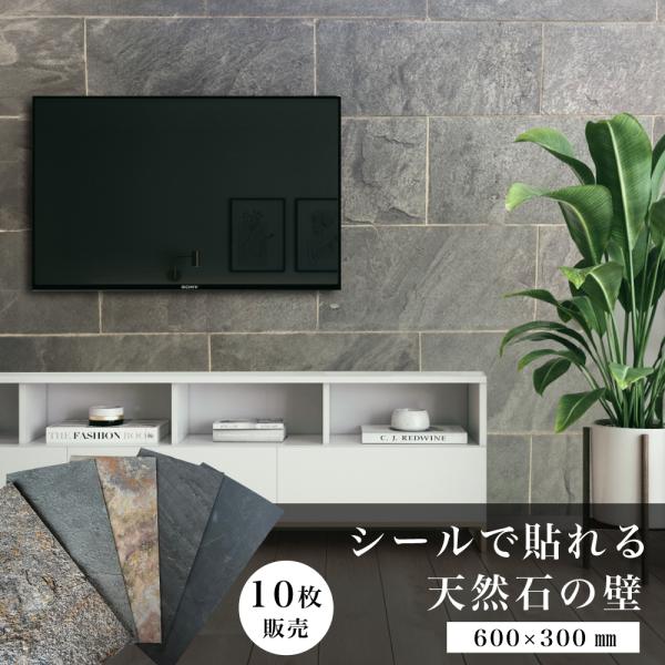 爆買 ウォールパネル 天然石 シール 薄い 軽い 壁パネル リノベ 石材 壁用 壁材 内装 インテリア DIY (ライトストーンウォール600x300 全色 10枚セット販売)