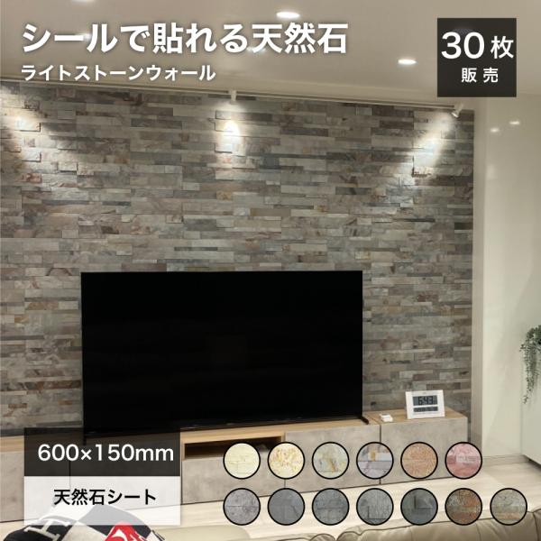 ウォールパネル 石壁 壁パネル 天然石 シール ウォールステッカー パネル 600×150mm 石材 内装 DIY(ライトストーンウォール シールタイプ 30枚セット 全15色)