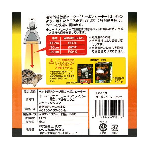 メーカー:ビバリア vivaria heaterhon ビバリア カーボンヒーター 60W 爬虫類用 4582443491059 20200118 kszk 爬虫類 照明 保温 交換球 E−26 カーボン ヒーター 昼夜兼用 60cm E26 opa2_delete エミートNEO CL 遠赤外線 保温球 亀・爬虫類 両生類 放熱 冬 トカゲ ヤモリ リクガメ レップカルジャパン ryohacategoryvivaria linerep0904 y20m01 温度 温度管理 フトアゴ 電球 赤外線
