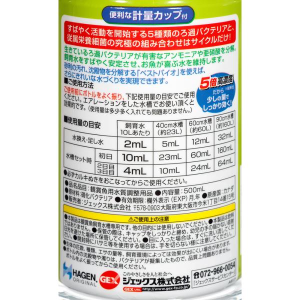 メーカー:ジェックス アクアリウム用品 アクア用品 調整剤 バクテリア その他の商品 ジェックス サイクル 500mL ろ過 硝化 GEX KK 4972547018908 gex_cycle gexrv_aq2_cyc cicle1227tok 0209_GEXbacteria 0801_GEXtropicalfish 0801_GEXconditionar line22115aqua 淡水用 海水用 opa2_choku