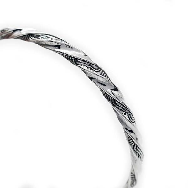 ネイティブアメリカンテイスト溢れるデザインにねじれを加えたgoodvibrations(グッドバイブレーション)のシルバーバングルです。