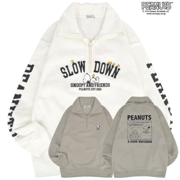 スヌーピー トレーナー 裏起毛 スウェット ハーフジップ プリント チャーリーブラウン 刺繍 長袖 SNOOPY PEANUTS