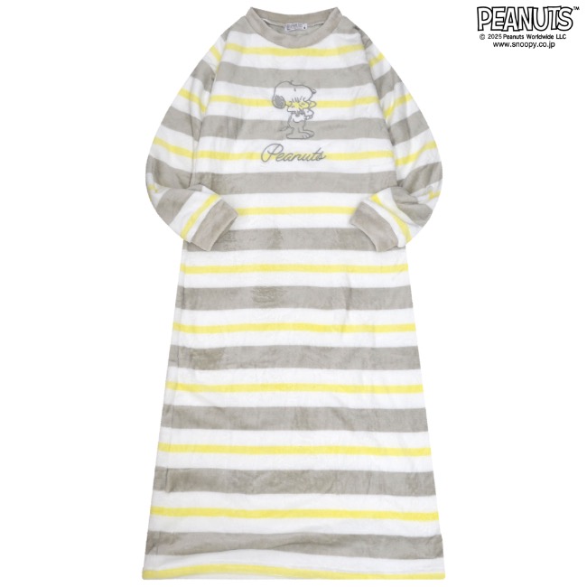 スヌーピー パジャマ ボア フリース ワンピース ルームウェア 長袖 ウッドストック 刺繍 SNOOPY PEANUTS
