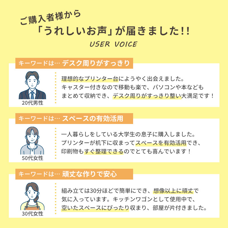 プリンター台 サイドワゴン キャスター付き 収納 3段 スリム A4
