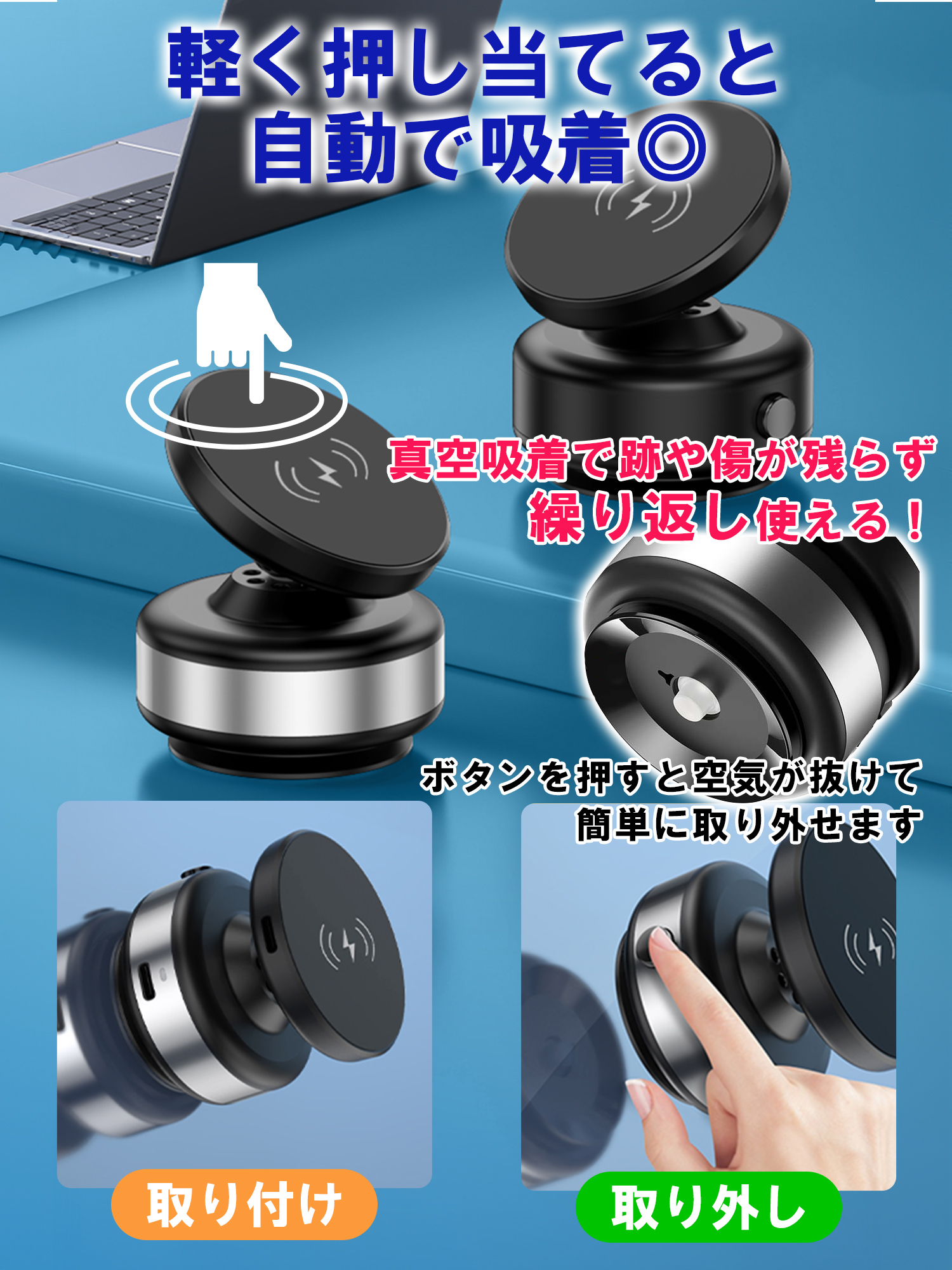 ※ケースの上から充電する場合、スマホケースの厚みや素材によって、うまく吸着せず充電が出来ない場合がございます。