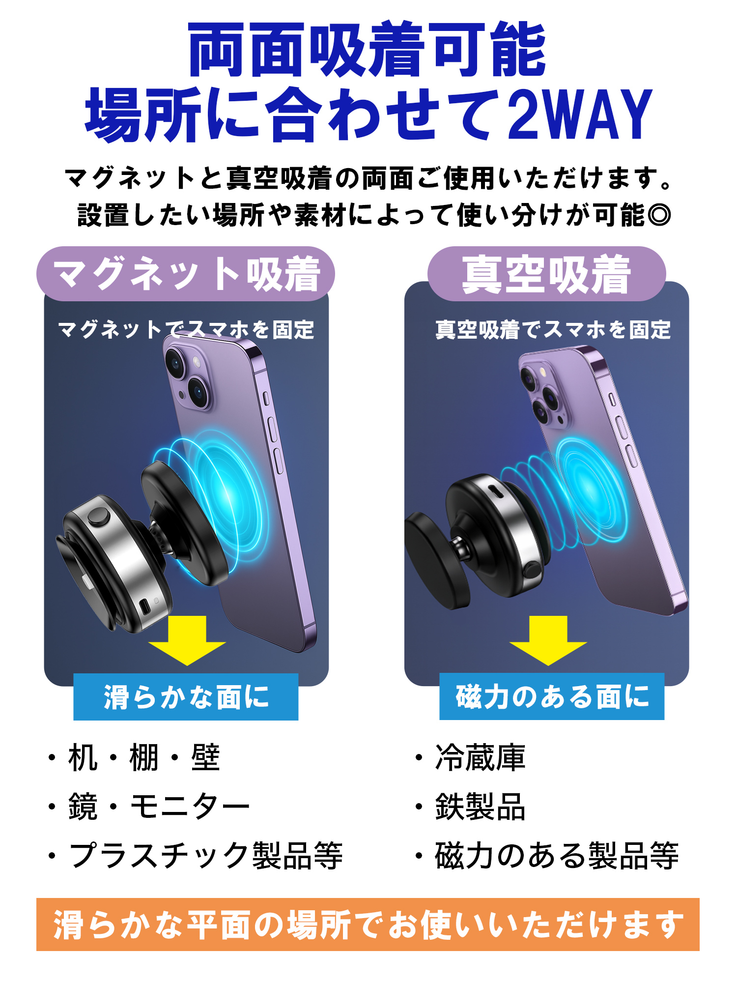 スマホホルダー 車 magsafe 車載ホルダー スマホスタンド 車 マグセーフ 車載 角度調節 マグネット吸着 真空式吸着 2WAY 折り畳み式 K007