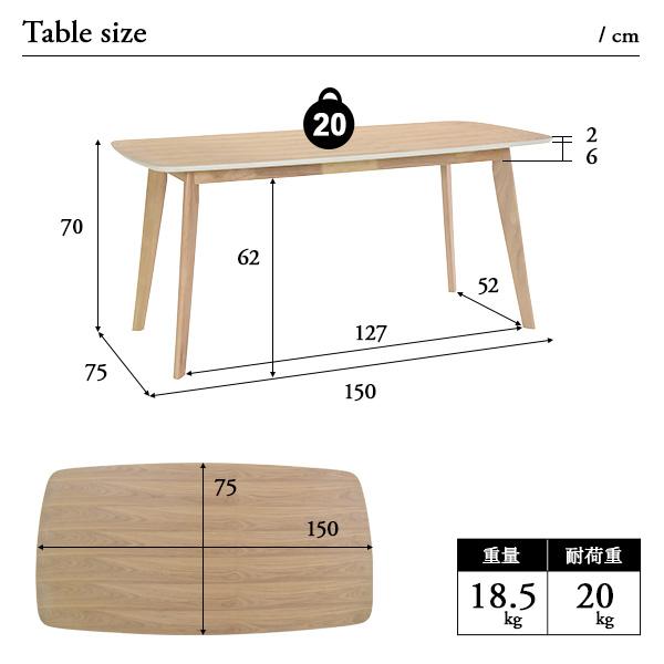 テーブル:約 幅150×奥行75×高さ70cm(天板R=30mm)約 18.5kg