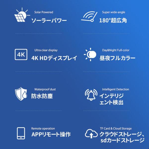 防犯カメラ 屋外 180°超広角 ソーラー 800万画素 防水 防塵 wifi 録画機能 無線 4K画質 家庭用 電源不要 IP66 動作検知 音声通話 見守りカメラ 監視カメラ