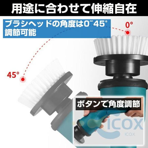用途に合わせて異なるブラシを自由に選択できます。お風呂掃除だけでなく、キッチン・浴槽・車・床・台所・お手洗い・天井などの様々な場所で徹底的に掃除できて、どこでもピカピカにできます!風呂ポリッシャーが取り外せる3段設計で、長さ二段階調節できます。実際の清掃距離によって、ハンドルの長さを自由に調節出来ます。ショートハンドルはタイルの目地や四隅、排水溝周りなど、汚れが落としにくい場所に適用し、さらに延長ロッド付きの電動ブラシは、床や浴室の清掃などの長距離での清掃に使用できます。お風呂掃除、引越し前の掃除、年末の掃除など適用できます。掃除を楽にし、人生をもっと楽しくします。