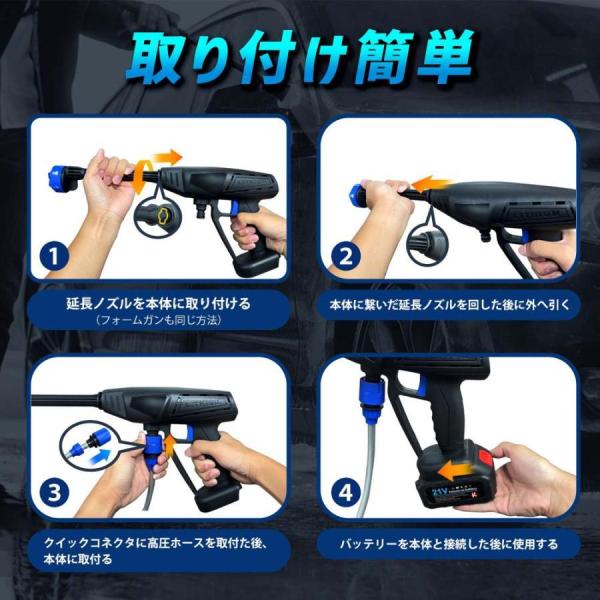 (2)これらのアタッチメントを使い分けることで、洗浄作業の幅が広がり、より効率的に作業を行うことができます。