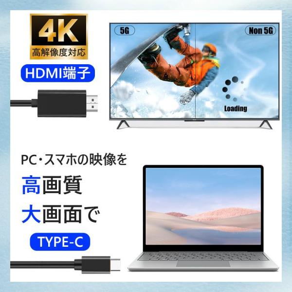 HDMI 変換ケーブル type-c 2m 4K hdmi タイプc USB-C 変換アダプター アンドロ Mac Windows Iphone 15 Iphone 16 急速転送 簡単接続 一年保証