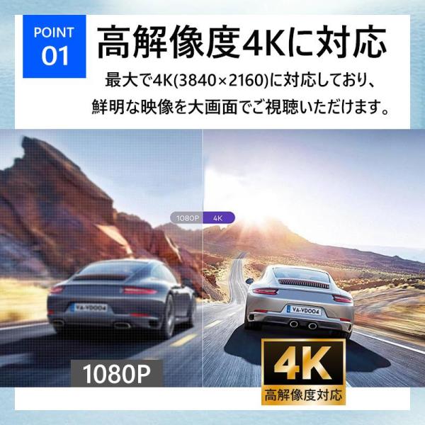 解像度:3840×2160/30Hzまで(4K@30Hz、2K@30Hz、1080P、720P等のHD解像度に対応)