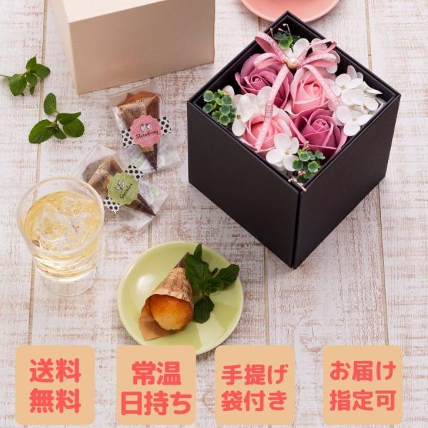 母の日 2024 プレゼント ギフト 花 スイーツ ソープフラワー 焼き菓子 フィナンシェ フラワーボックス 送料無料(北海道東北 別途600円追加)