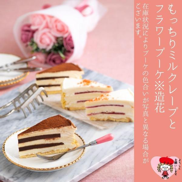 母の日 ギフト 花 スイーツ 2025 花とスイーツ 送料無料(北海道1500円東北沖縄県550円追加) ミルクレープ 4個 生チョコ ストロベリー